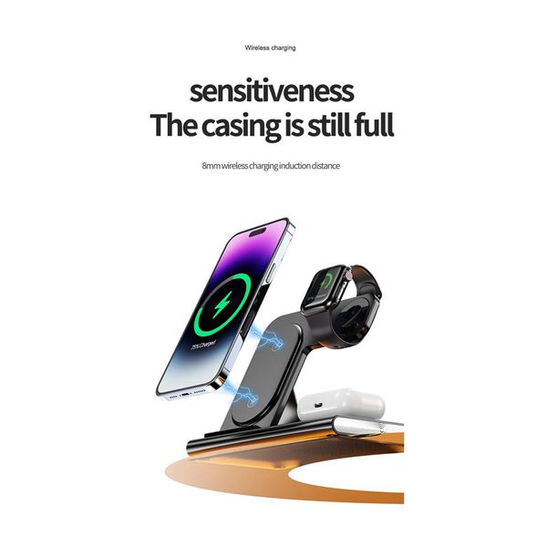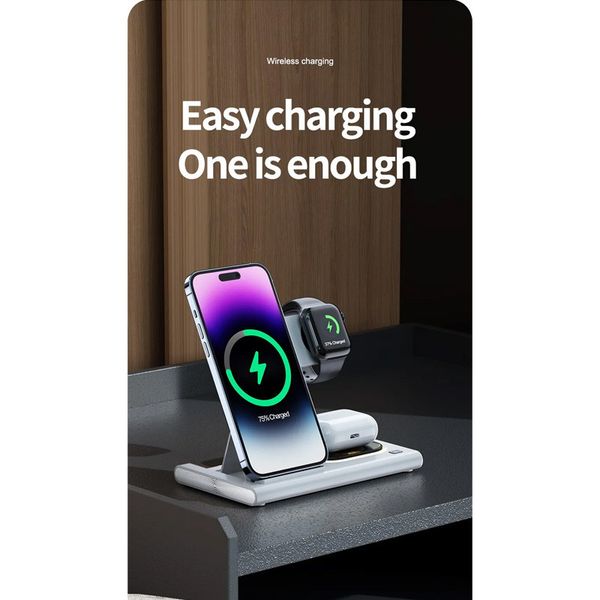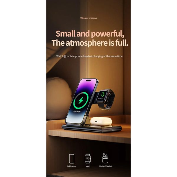 شارژر رومیزی وایرلس | شارژر 3in1 سریع، مغناطیسی و کاملاً کاربردی